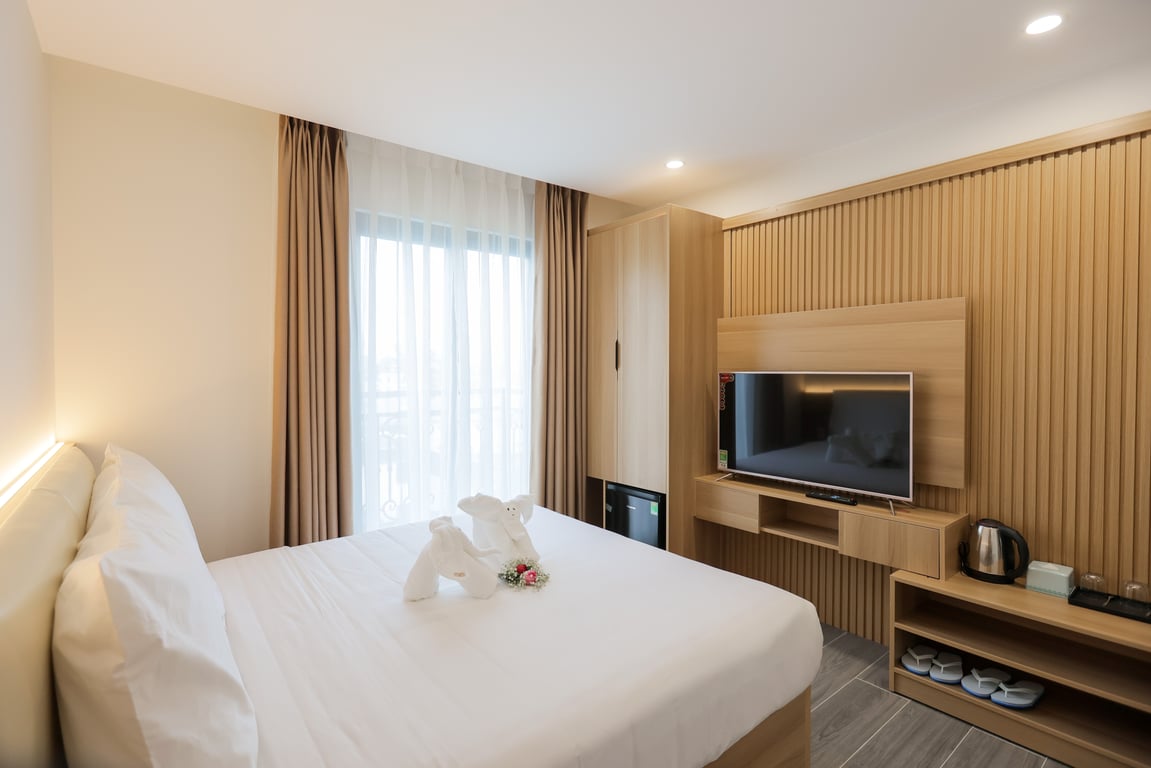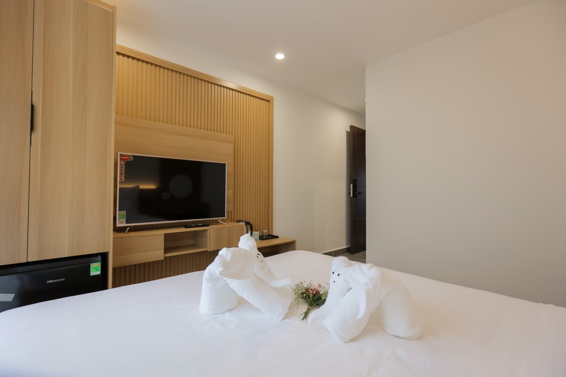 Với thiết kế tinh tế kết hợp giữa hiện đại và ấm cúng, phòng được trang bị giường đôi rộng rãi, điều hòa không khí, TV màn hình phẳng, phòng tắm riêng khép kín đi kèm mang đến trải nghiệm thư giãn tuyệt đối.