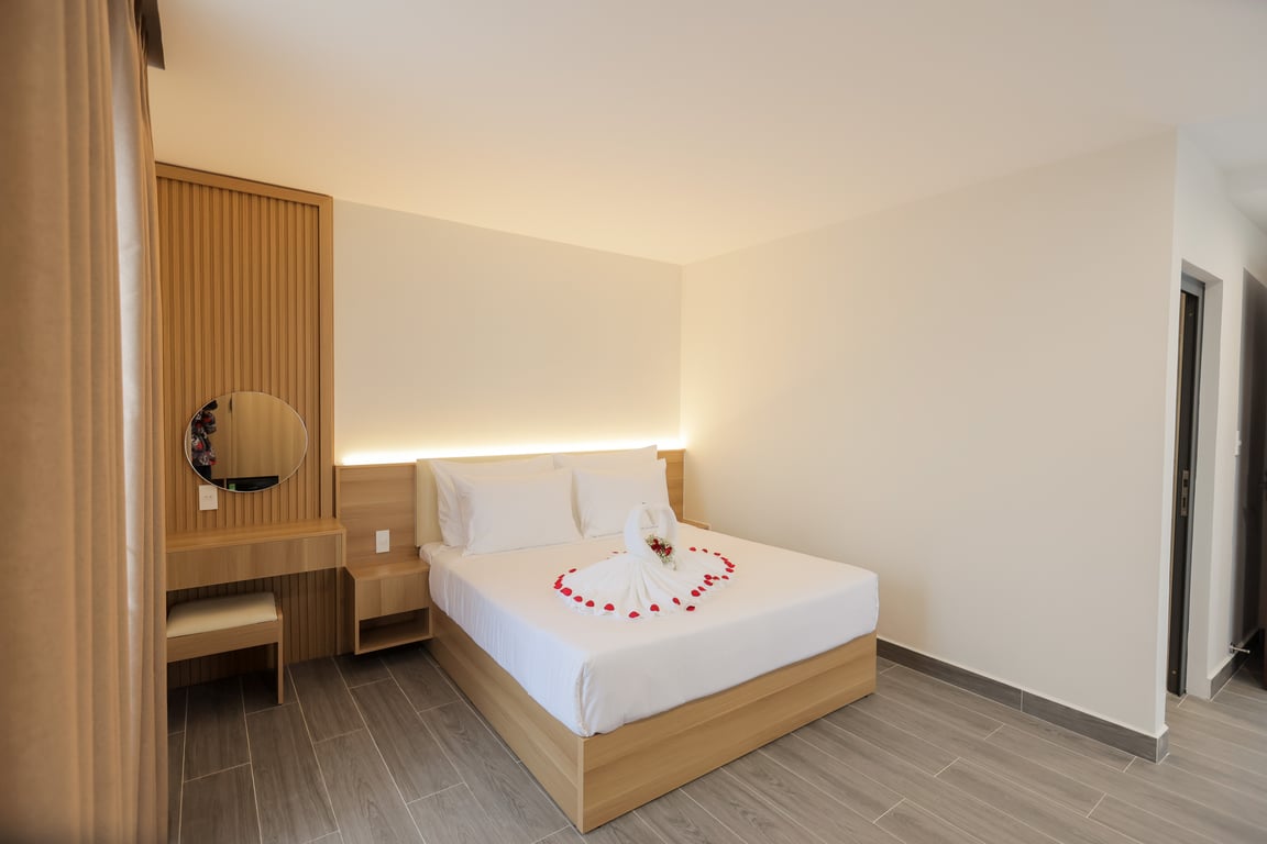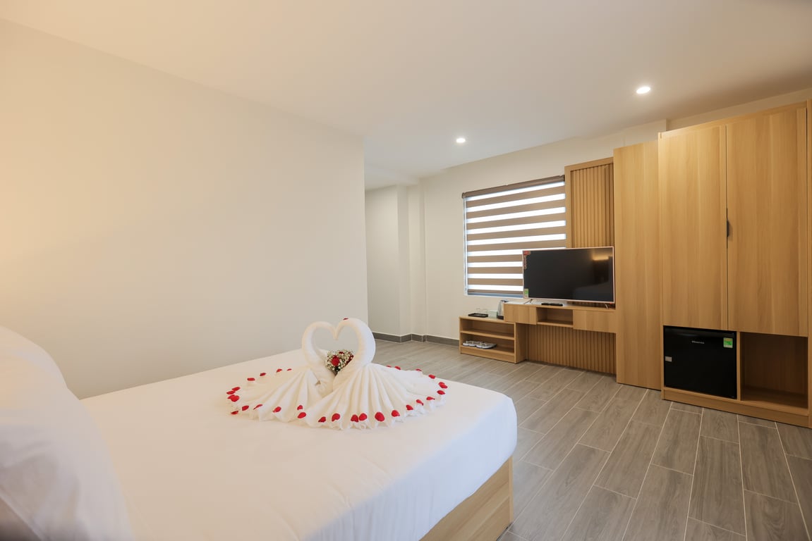 Phòng Suite Double Room mang đến trải nghiệm lưu trú cao cấp với không gian rộng rãi, thiết kế tinh tế và tiện nghi hiện đại. Từ cửa sổ, bạn có thể tận hưởng khung cảnh Đà Lạt lãng mạn trong không khí se lạnh dễ chịu. Đây là lựa chọn hoàn hảo cho các cặp đôi tìm kiếm sự riêng tư và thoải mái trong kỳ nghỉ.